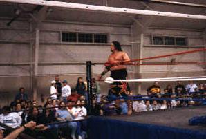 Headshrinker Samu works the crowd during Main Event action at a Pennsylvania show.