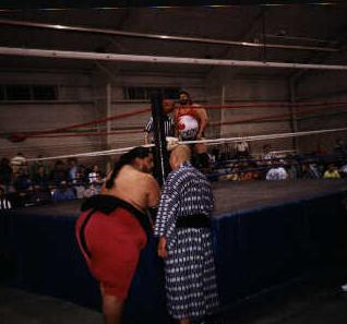 Yokozuna & Fuji go over plans as Typhoon awaits in the ring. This is what you'd call a HUGE main event!